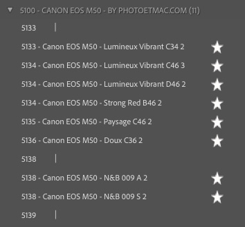 Profils Lightroom Canon EOS M6 MkII, M50, M50 II