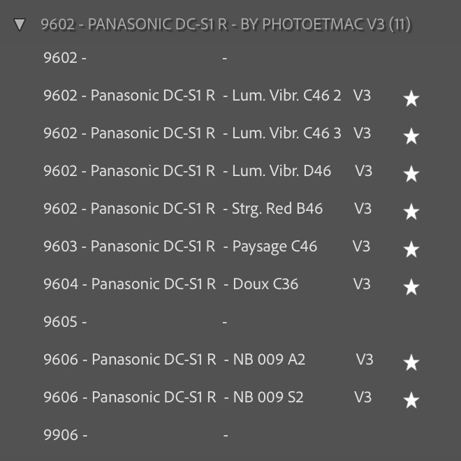 Profils Lightroom pour le Panasonic Lumix DC-S1 R