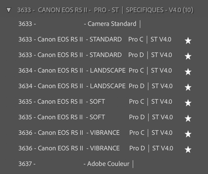 Profils Lightroom – PRO – pour le Canon EOS R5 MkII