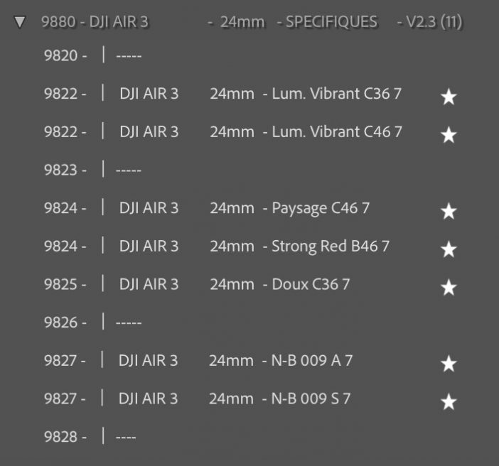 - Profils compatibles “strictement” avec les fichiers RAW du drone DJI Air III – Ces profils sont incompatibles avec d’autres types d’appareils et de drones plus anciens.