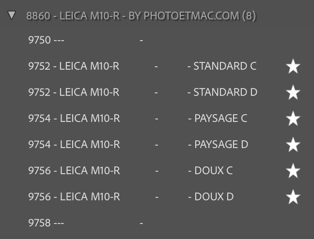 Profils Lightroom spécifiques pour le Leica M10-R