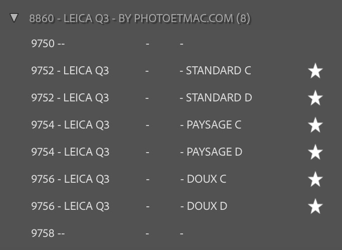 Profils Lightroom spécifiques pour le Leica Q3