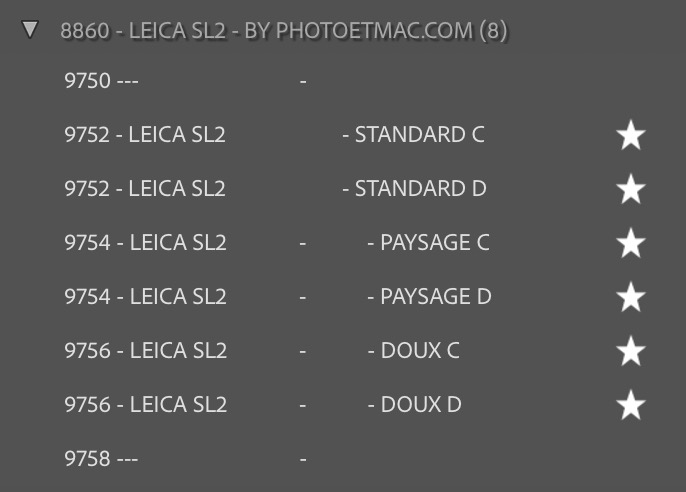 Profils Lightroom spécifiques pour le Leica SL2
