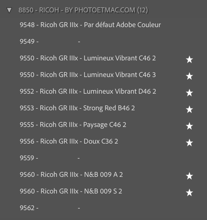 Profils Lightroom spécifiques RAW Ricoh GR IIIx